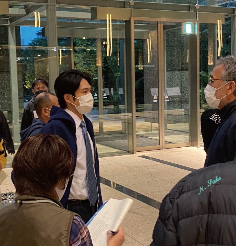 ようやくカネパルの社屋ロビーにこの日初めて来た青林こと、洸平。この日は1日ロビーで撮影しておりました。