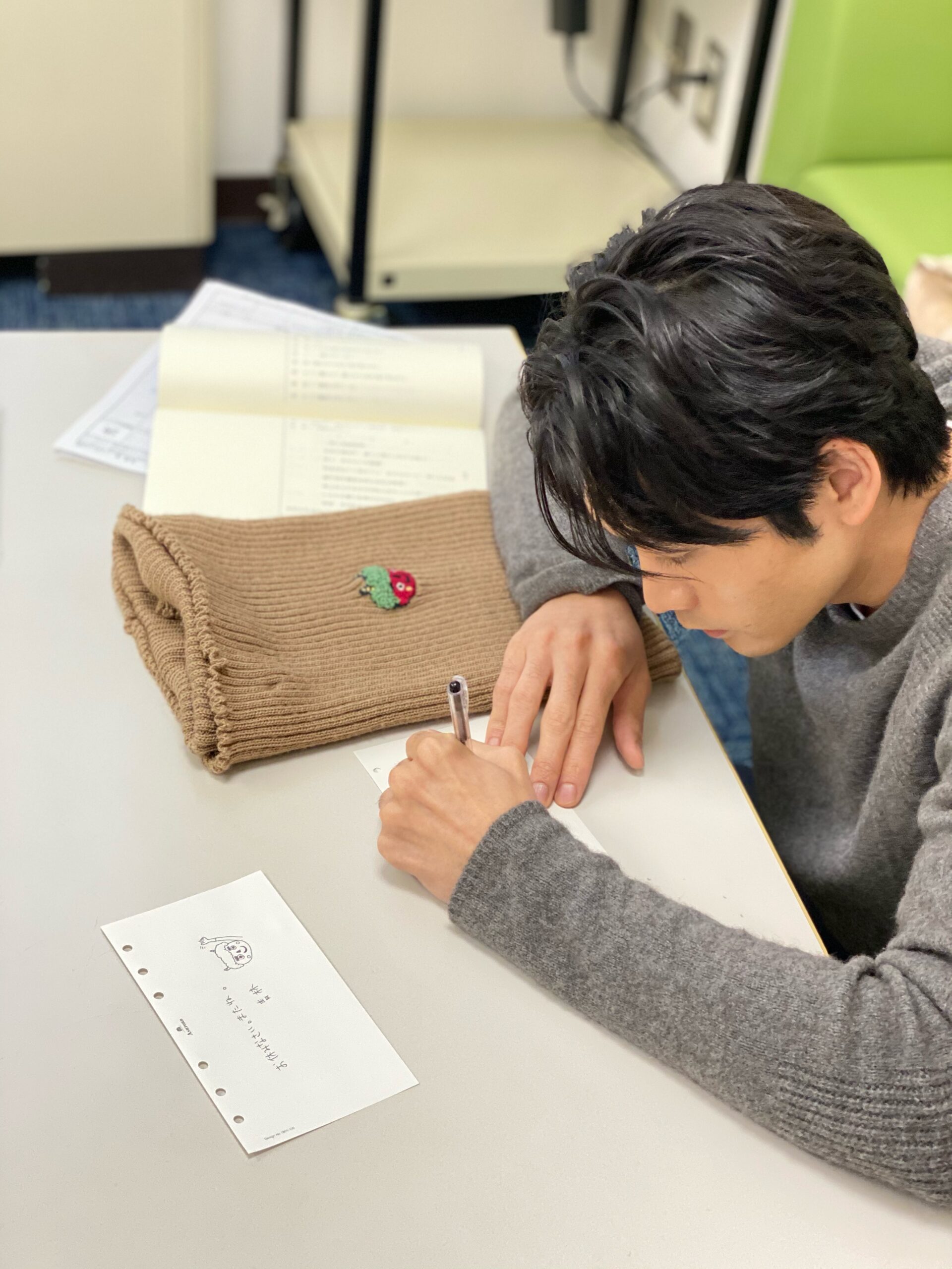 #撮影の合間に楽屋で一生懸命描いてる洸平画伯