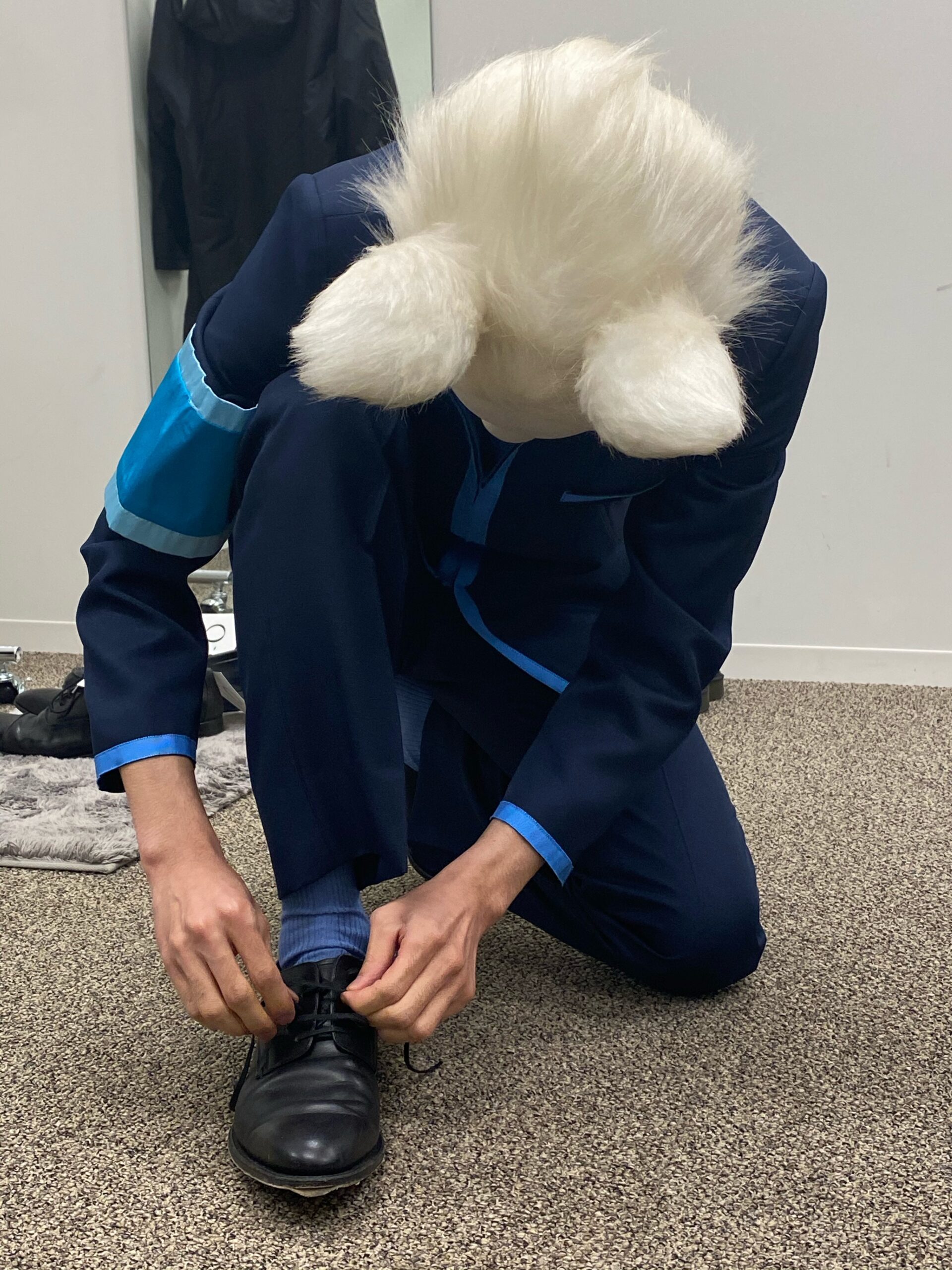 写真は一見よくわからないかもですが、初回時、誰かわからないようにやったウサギのメイクをしている時に靴紐がほどけたのを結んでる洸平さんの姿です。