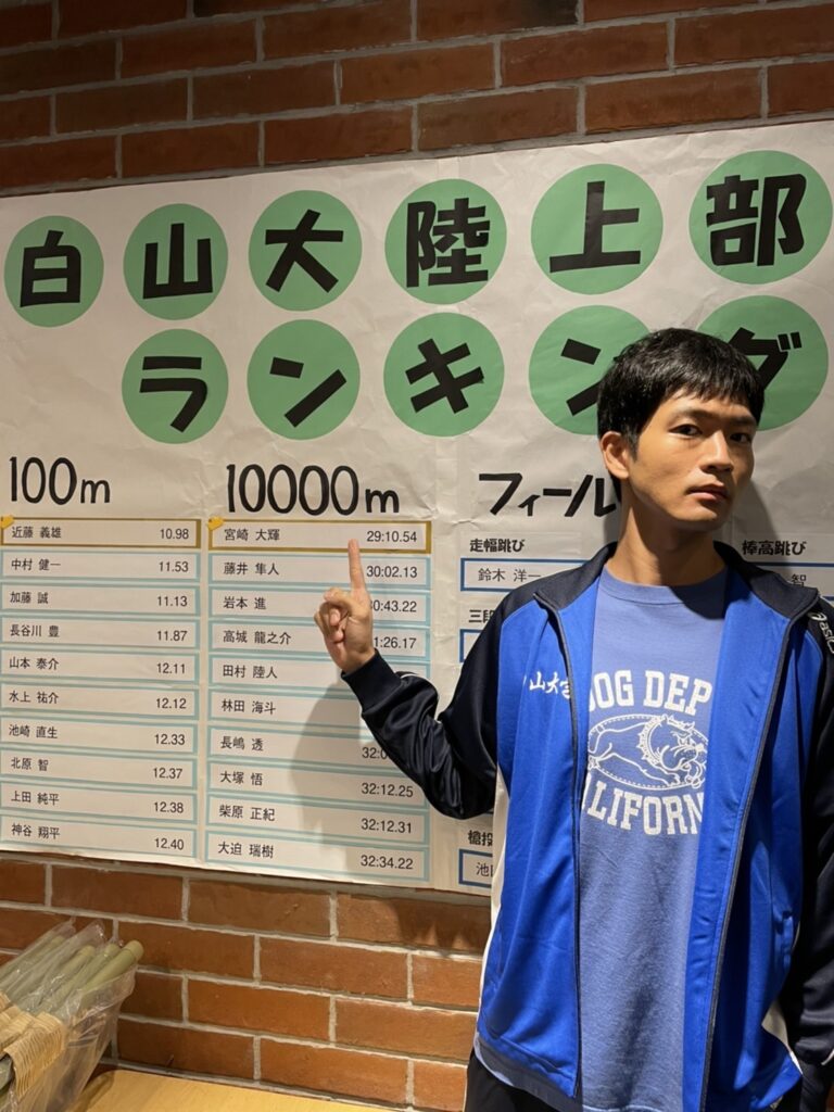#宮崎大輝、白山大学陸上部の1万メートルで、