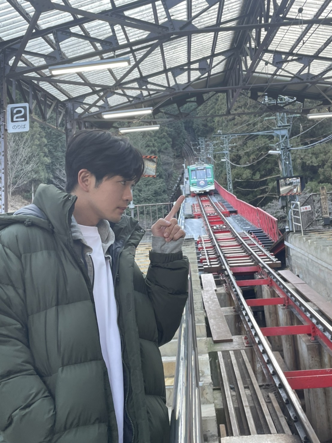 # 写真にも映ってるケーブルカーで山頂を目指すことに。