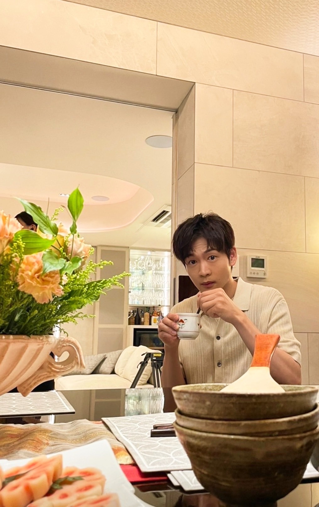 # 洸平さん、「ヤッタァー!」と早々に茶碗蒸しをパクパクモグモグ。