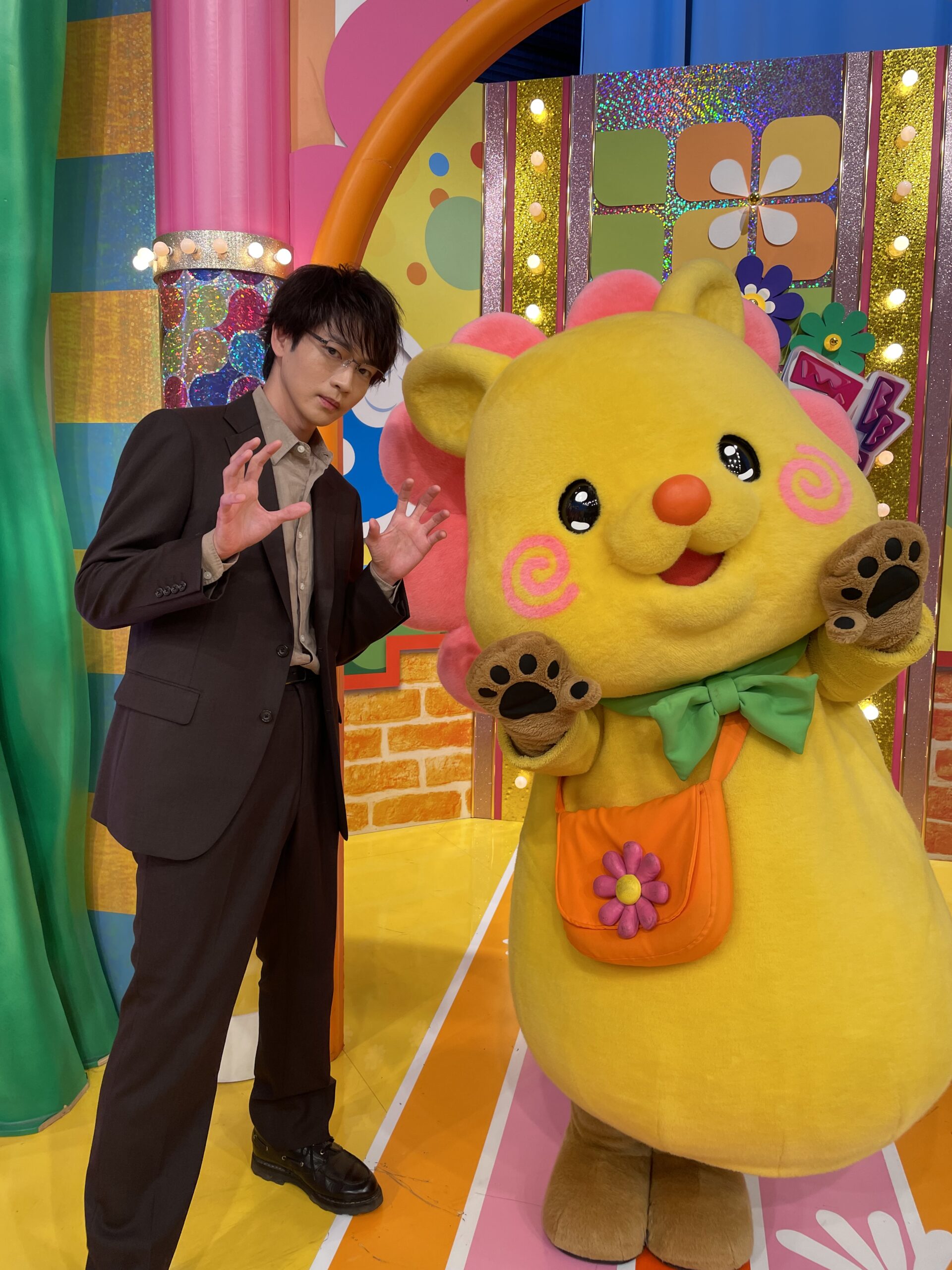 こちらは「ヒルナンデス!」のキャラクター、ハピナンデスくんとの2ショットです。