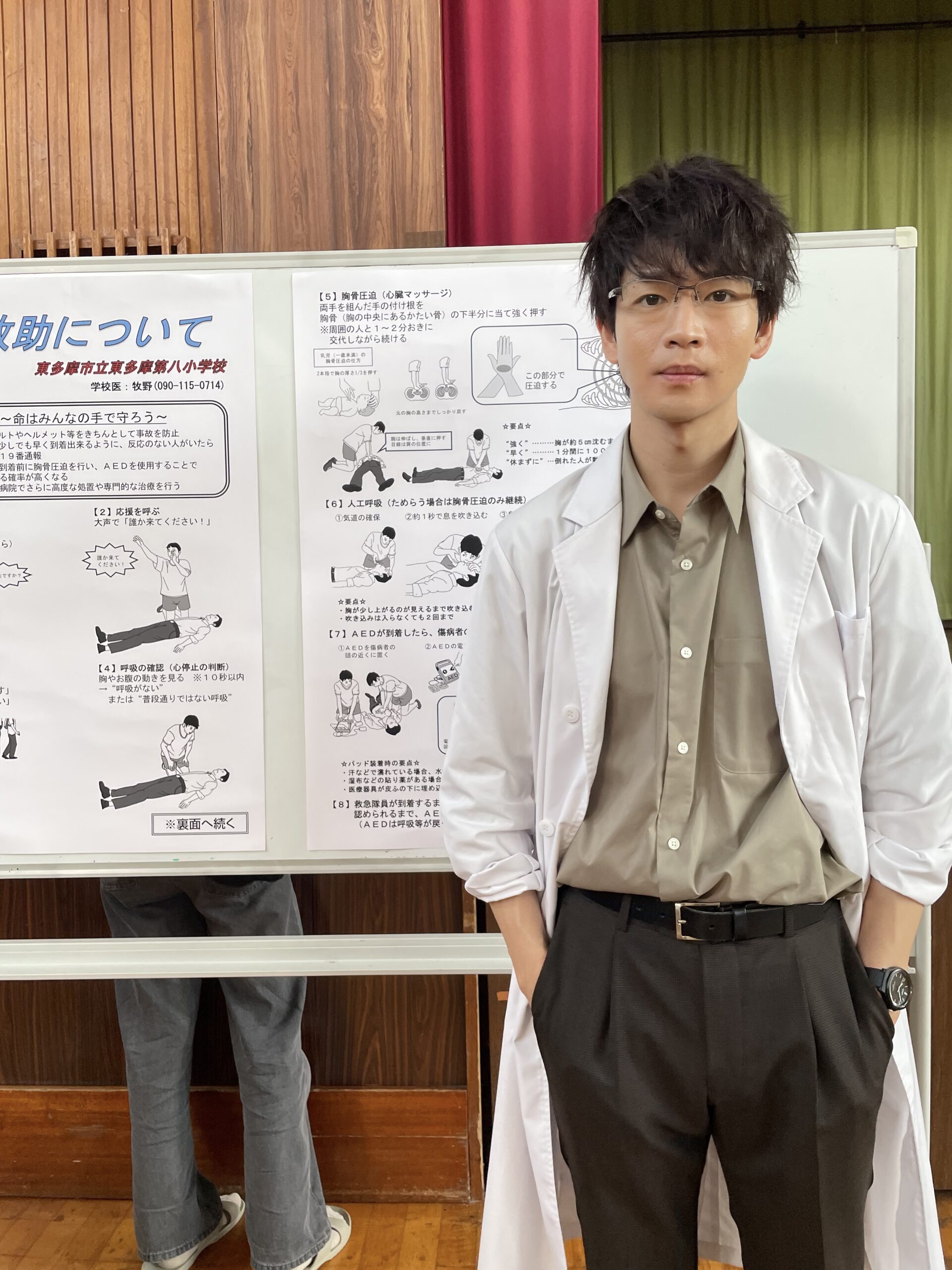 こちらの写真は第2話より、AED講習の時の牧野先生です。